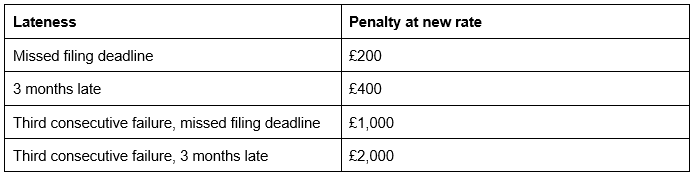 Another key corporation tax change is the new penalty amounts applicable to late-filed corporation tax returns. For returns with a due date that is on or after 1 April 2026, the penalties are: