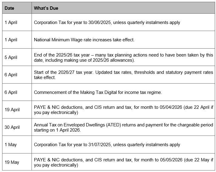 It can be hard to keep track of tax changes, with the start of a new tax year often bringing new rates, allowances and other legislative changes. To make things easier, here is a list of the key tax changes that will take effect from April 2026.
